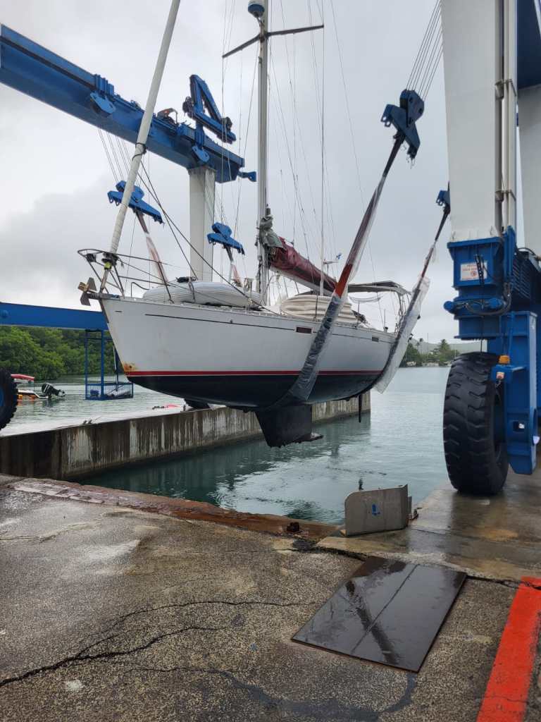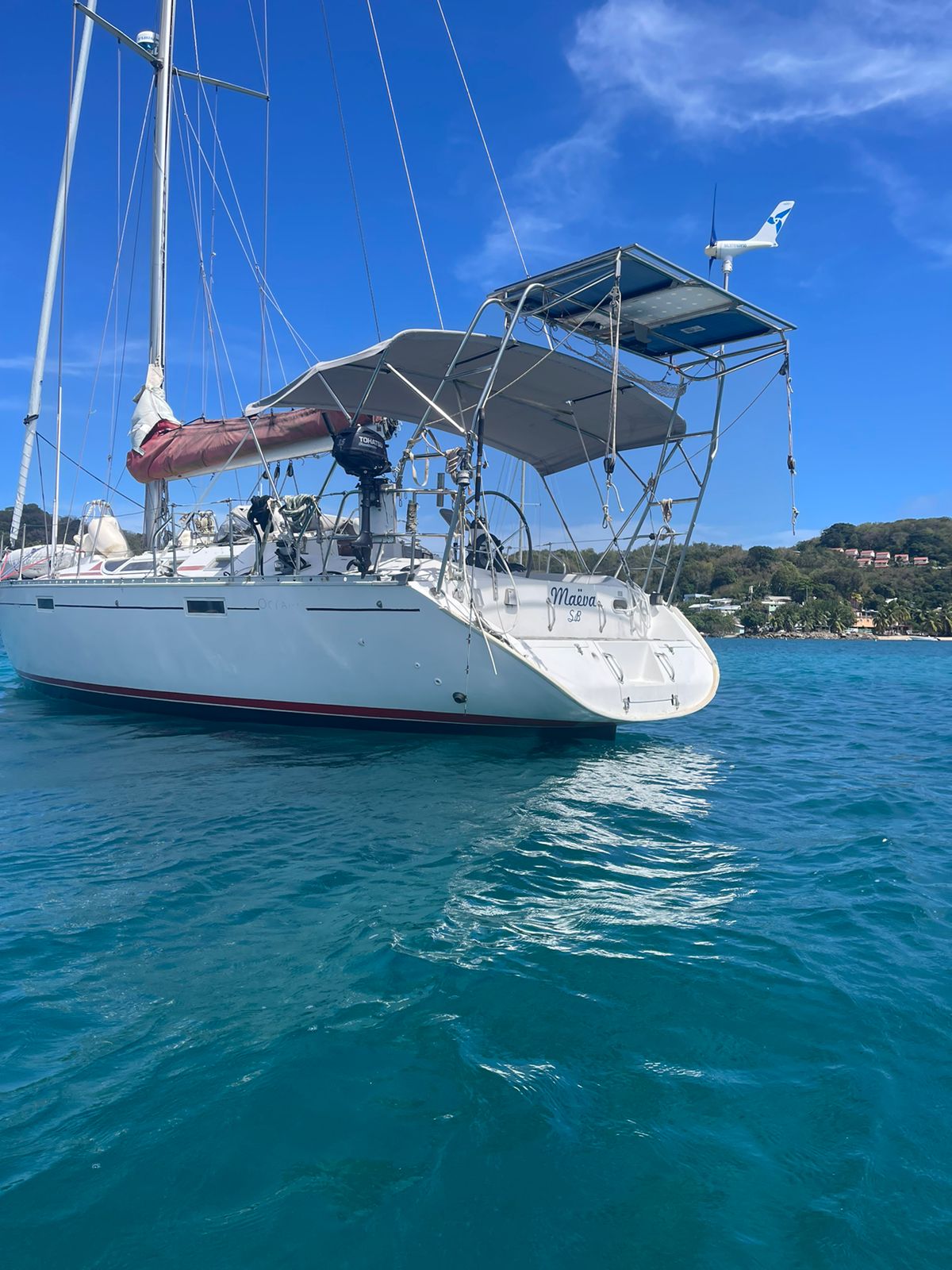 Our boat Maeva at anchor in Sainte Anne